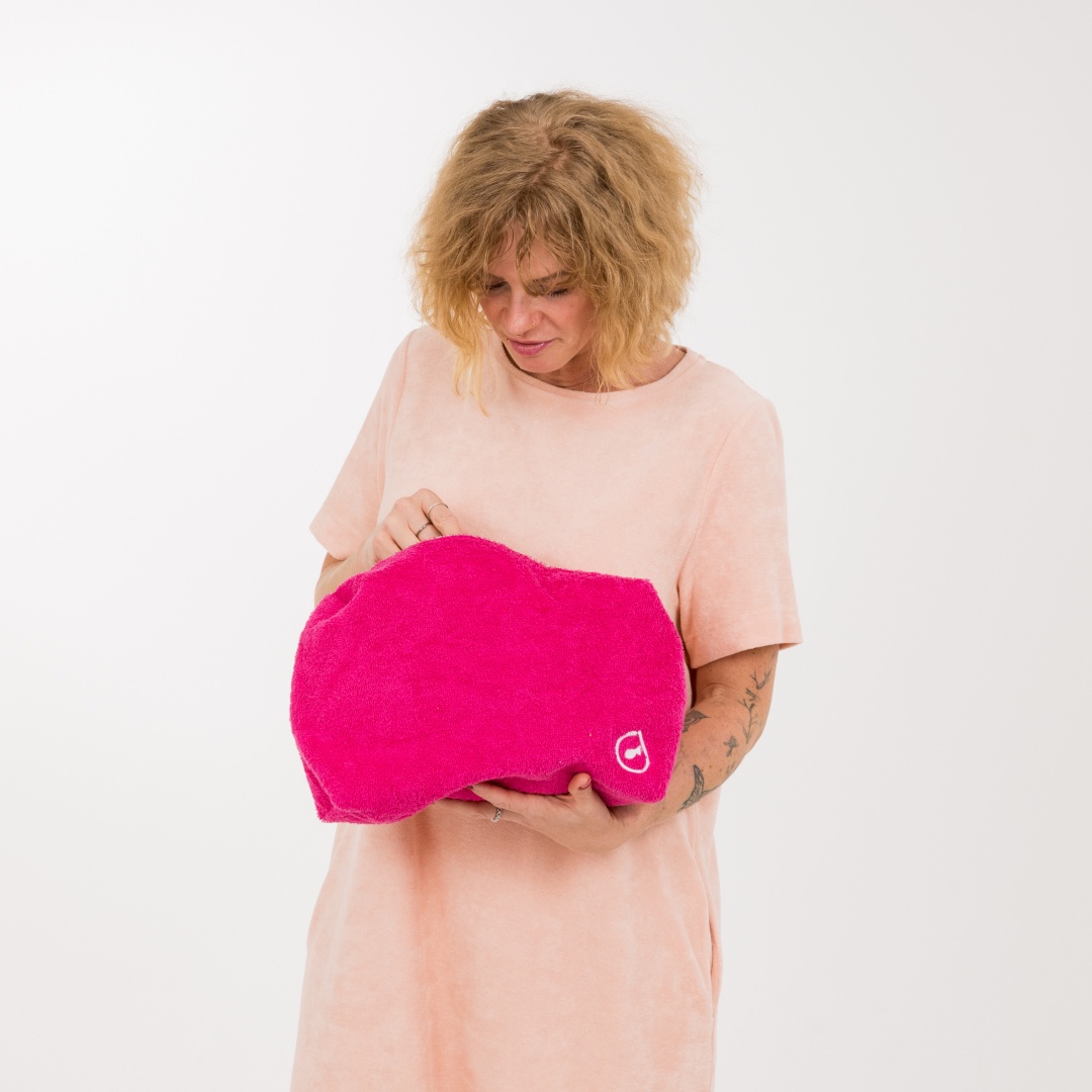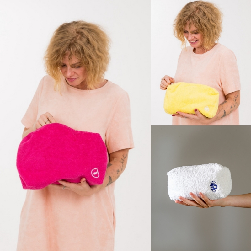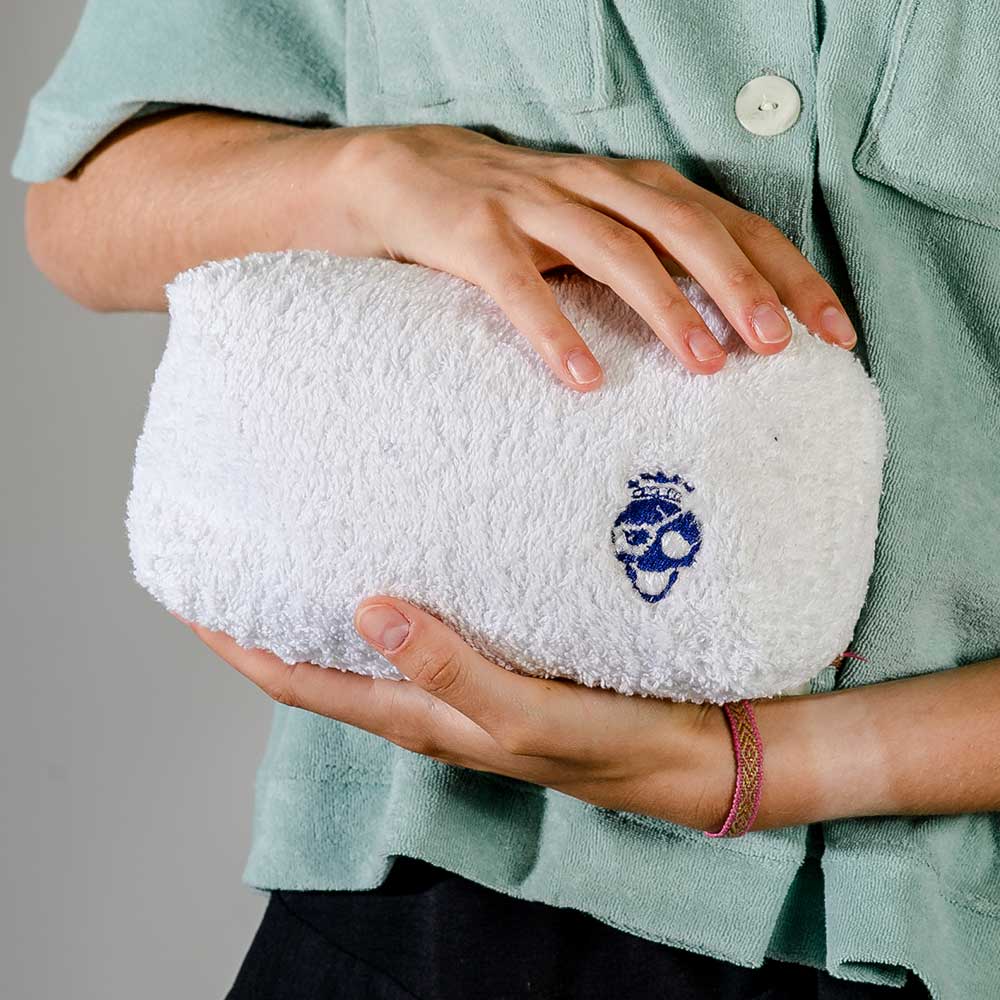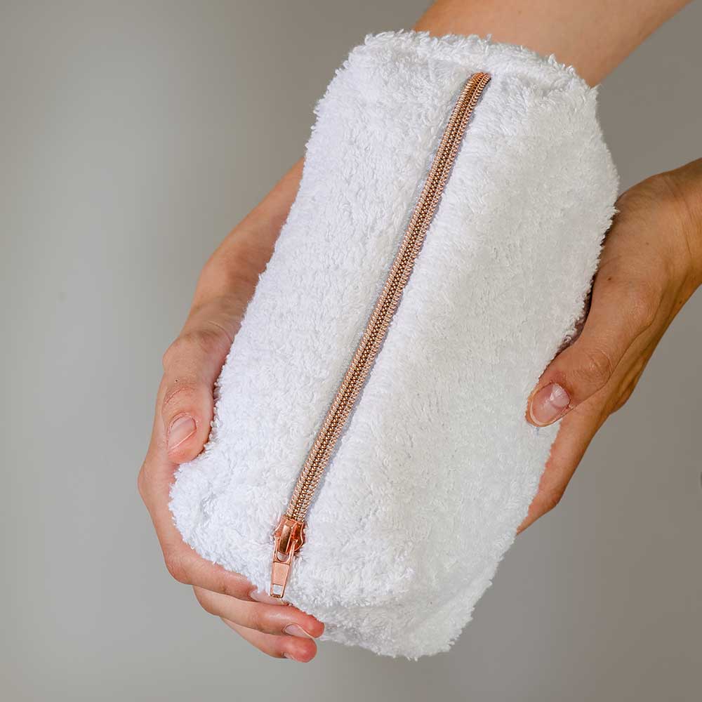 Flauschiger Frottee-Stoff: Der weiche Stoff sorgt nicht nur für ein angenehmes Gefühl, sondern macht den Beutel auch leicht in jeder Tasche auffindbar.