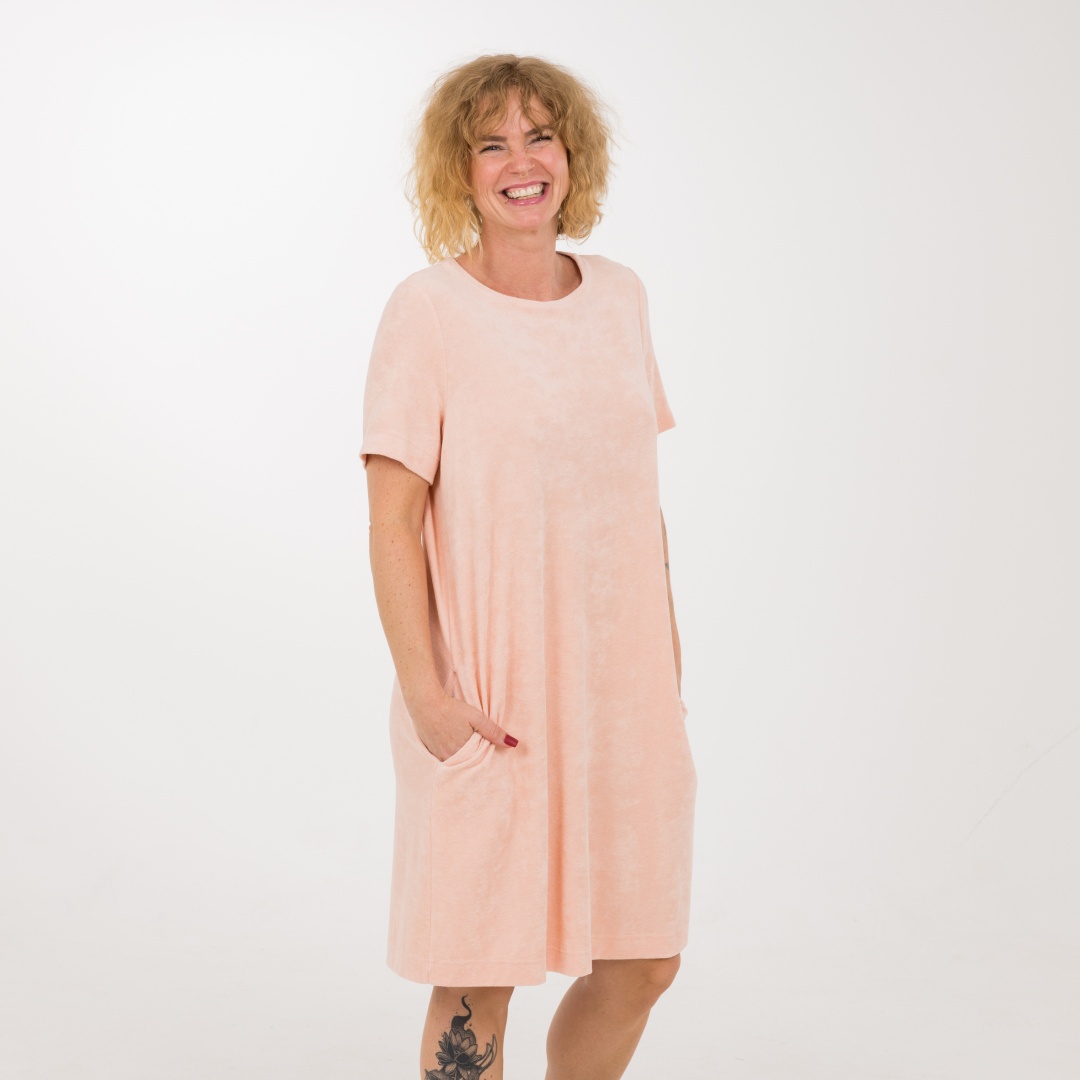 Mit seinen beiden Seitentaschen bietet es zusätzlichen Komfort, um kleine Gegenstände wie Sonnencreme, Handy oder Schlüssel sicher zu verstauen. Das Kleid ist besonders geeignet für Strand- oder Poolbesuche und ideal, um nach dem Schwimmen schnell zu trocknen, während es gleichzeitig einen lässigen Look bietet.